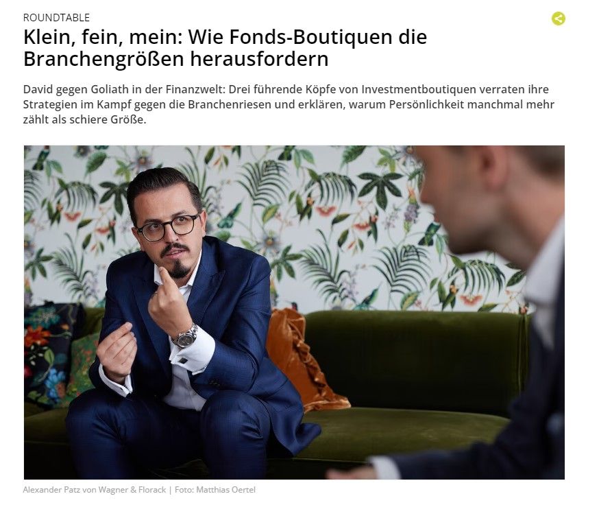 Alexander Patz spricht im Roundtable-Interview mit „Das Investment“ über die Alleinstellungsmerkmale inhabergeführter unabhängiger Fondsboutiquen.