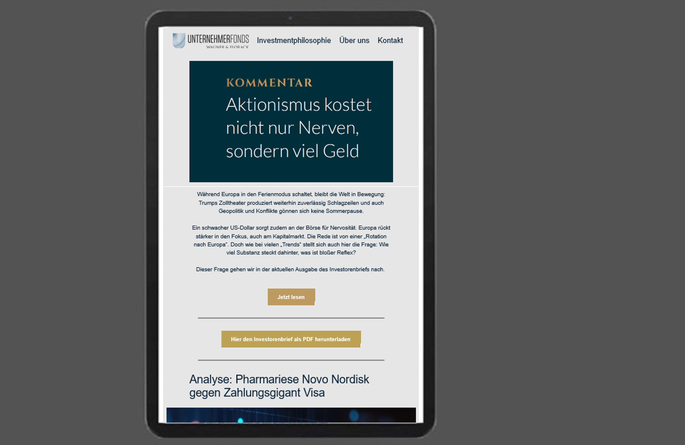 Disclaimer: Sämtliche Angaben und Inhalte dieses Blogs enthalten ausschließlich die subjektive Meinung des Erstellers; sie erfolgen ausschließlich zu Informationszwecken und stellen keine Empfehlung oder Aufforderung zur Zeichnung, zum Kauf, zum Verkauf, zum Tausch oder zum Halten bestimmter Finanzinstrumente dar. Weder durch die Lektüre dieses Blogs, noch durch die darin ausgesprochenen Empfehlungen oder wiedergegebenen Meinungen kommt ein Anlageberatungs- oder Anlagevermittlungsvertrag zustande. Jegliche Entscheidung zur Zeichnung, zum Kauf oder zum Verkauf in Bezug auf ein in diesem Blog erwähntes Finanzinstrument sollte nicht auf Grundlage dieses Blogs, sondern ausschließlich nach vorheriger eingehender Beratung durch einen professionellen Anlageberater oder Vermögensverwalter erfolgen. Die vorliegenden Angaben können eine auf Ihre individuellen Verhältnisses und Ihre Anlageziele zugeschnittene Beratung nicht ersetzen. Die Ausführungen stellen auch keine Anlagestrategieempfehlung i.S.d. Artikels 3 Absatz 1 Nummer 34 der Verordnung (EU) Nr. 596/2014 oder Anlageempfehlungen im Sinne des Artikels 3 Absatz 1 Nummer 35 der Verordnung (EU) Nr. 596/2014 dar und unterliegen daher nicht den gesetzlichen Anforderungen zur Gewährleistung der Unvoreingenommenheit. Der Herausgeber/Ersteller und die von ihm zur Erstellung dieses Blogs beschäftigten Personen haben die größtmögliche Sorgfalt darauf verwandt, sicherzustellen, dass die für diesen Blog verwendeten und zugrundeliegenden Tatsachen vollständig und zutreffend sowie die herangezogenen Einschätzungen und aufgestellten Prognosen realistisch sind. Die zugrunde gelegten Informationen und Daten stammen aus öffentlich zugänglichen Quellen, die vom Herausgeber/Ersteller für zuverlässig gehalten werden. Gleichwohl kann der Herausgeber/Ersteller keine Haftung für die Aktualität, Richtigkeit, Vollständigkeit oder Qualität der Informationen und Daten übernehmen. Einschätzungen geben die Meinung des Herausgebers/Erstellers zum Zeitpunkt der Veröffentlichung wieder. Der Herausgeber/Ersteller dieses Blogs hat die zugrunde gelegten Informationen nicht auf Richtigkeit und/oder Vollständigkeit geprüft und übernimmt für die Richtigkeit und Vollständigkeit der Informationen keine Haftung. Insbesondere haftet er nicht für indirekte und/oder direkte Schäden und/oder Folgeschäden. Der Herausgeber/Ersteller dieses Blogs übernimmt ferner keine Gewähr oder Haftung für die Angemessenheit der herangezogenen Einschätzungen oder für den Eintritt der aufgestellten Prognosen. Jede Investition in Aktien und anderen Finanzinstrumente ist mit Risiken behaftet, die je nach Produkt sogar bis zu einem Totalverlust des gesamten eingesetzten Kapitals führen können. In der Vergangenheit erzielte Erfolge bieten keine Gewähr für künftige Entwicklungen. Die Veröffentlichung kann durch aktuelle Entwicklungen überholt sein, ohne dass die in ihr enthaltenen Informationen geändert wurden. Der Herausgeber/Ersteller hat keine Aktualisierungspflicht. Er weist darauf hin, dass Änderungen in den verwendeten und zugrunde gelegten stichtagsbezogenen Daten und Tatsachen bzw. in den herangezogenen Einschätzungen maßgeblichen Einfluss auf die Gesamteinschätzung haben können. Etwaige Ausführungen zu steuerlichen Gegebenheiten beinhalten lediglich allgemeine Angaben, die auf der Grundlage des derzeit geltenden Rechts erfolgen. Die Ausführungen stellen keine Steuerberatung dar, sie ersetzen nicht die Beurteilung Ihrer individuellen steuerlichen Verhältnisse durch einen Steuerberater. Bevor Sie sich zum Abschluss eines Geschäfts aufgrund der im Blog kommunizierten Meinungsäußerungen entschließen, vergewissern Sie sich bitte, dass Sie die Funktionsweise des Geschäfts und die sich hieraus für Sie ergebenden Folgen verstehen. Wir empfehlen Ihnen, eine eigene Bewertung des beschriebenen Produkts dahingehend vorzunehmen, ob dies unter Berücksichtigung Ihrer persönlichen Situation und der von Ihnen verfolgten Ziele sowie der dem Erwerb innewohnenden typischen Risiken und Gewinnmöglichkeiten für Sie geeignet ist. Für diese Bewertung sollten Sie auch Auskünfte Ihrer eigenen Berater vor Abschluss des Geschäfts einholen. Der Herausgeber/Ersteller und die von ihm zur Erstellung dieser Veröffentlichung beschäftigten Personen haben die größtmögliche Sorgfalt darauf verwandt, sicherzustellen, dass die für diese Veröffentlichung verwendeten und zugrundeliegenden Tatsachen vollständig und zutreffend sowie die herangezogenen Einschätzungen und aufgestellten Prognosen realistisch sind.