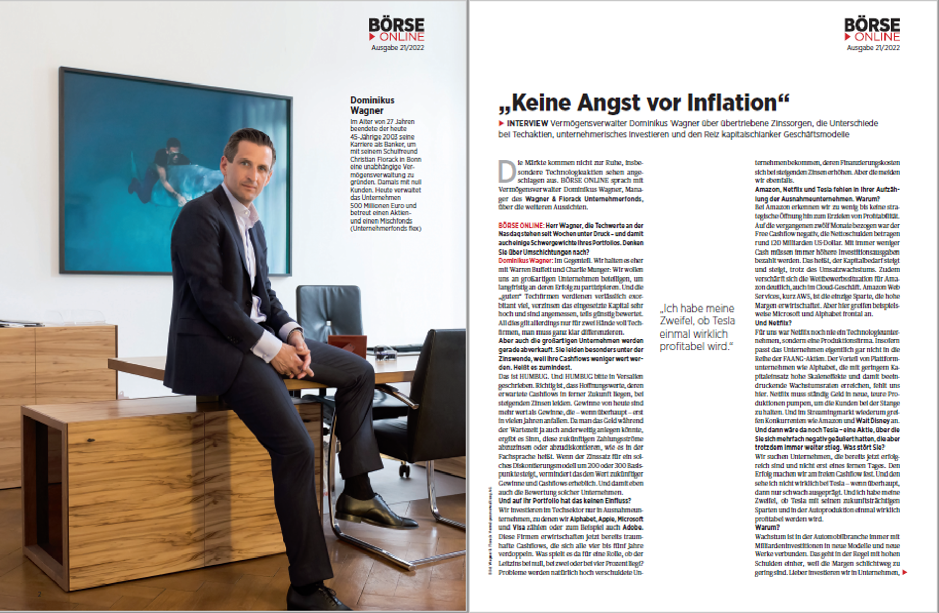 Mit Börse Online spricht Dominikus Wagner über übertriebene Zinssorgen, die Unterschiede bei Techaktien, unternehmerisches Investieren und den Reiz kapitalschlanker Geschäftsmodelle.