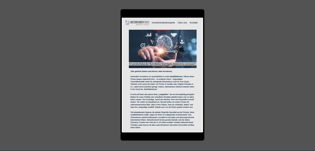 Erinnern Sie sich noch an die Prognosen zu Jahresanfang? Nahezu unisono blickten die Kapitalmarktstrategen von Banken und Investmentgesellschaften pessimistisch auf das Jahr 2023. Rezession ante portas, so der zugegebenermaßen etwas verkürzte Tenor der „Börsenexperten”. Unter dem Eindruck weiterer Zinserhöhungen der Zentralbanken werde die Konjunktur alsbald kippen und den Aktienmärkten (zeitnah) weiteres Ungemach bevorstehen. Es kam, wie es kommen musste, nämlich völlig anders. „Der Markt“ dachte nicht daran, sich an das Drehbuch der Strategen zu halten; die Prognostiker hatten die Rechnung ohne den Wirt gemacht. Wie gut, dass unser Investmentansatz und somit unser langfristiger Investmenterfolg nicht darauf beruhen, die Inflationsentwicklung, die Zinsentwicklung, den Eintritt sowie die Dauer und Schwere einer Rezession oder die kurzfristige Entwicklung der Aktienmärkte treffsicher prognostizieren zu können. Vielmehr investieren wir in Unternehmen, die verlässlich (sehr) gutes Geld verdienen, und zwar über den gesamten Zyklus hinweg, also auch in Rezessionen. Mit unseren „robusten Gewinnmaschinen” in den Unternehmerfonds konnten wir deshalb an der bisherigen Erholung der Aktienmärkte im Jahr 2023 stark und sogar überdurchschnittlich partizipieren.