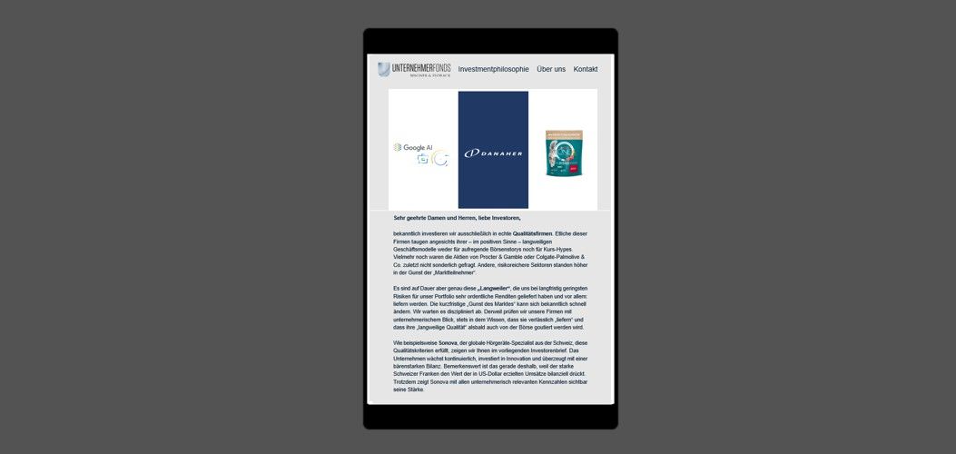 Fazit: Für uns sind Nestlé und Danaher Paradebeispiele für herausragende Qualitätsunternehmen, an denen wir noch möglichst lange als Miteigentümer beteiligt bleiben wollen, jedoch nicht ohne die Geschäftsmodelle fortlaufend einer kritischen Kontrolle aus unternehmerischer Sicht zu unterziehen.
