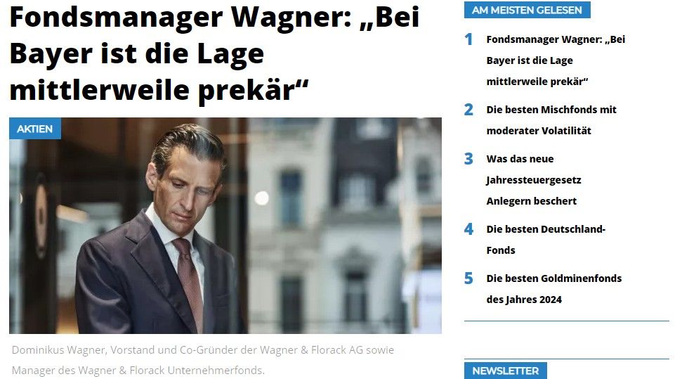 Dominikus Wagner in einem Beitrag für Fundresearch. Er zeigt auf, wie neben den hochfliegenden Übernahmeplänen vor allem auch die Schönwetterdenke des Managements zur existenziellen Gefahr für Bayer werden konnte.