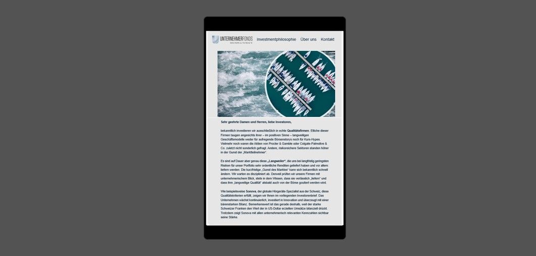 Fazit: Langfristige, substanzielle Investitionssicherheit steht für uns an erster Stelle. Daher vermeiden wir Risiken konsequent und lassen durch die hohe Gewichtung an wettbewerbsüberlegenen Consumer-Staples-Firmen bewusst mitunter auch Renditeopportunitäten aus, selbst wenn das dazu führt, nicht zu jeder Zeit an der Performance-Spitze zu stehen. Renditemaximierung kann unserer Ansicht nach nicht das wichtigste und erst recht nicht das alleinige Ziel sein, auch wenn es in weiten Teilen der Finanzbranche so gesehen werden mag. Um die Risiken so gering wie möglich zu halten, setzen wir die Prioritäten anders und verzichten damit bewusst auf Renditepotenzial – und trotzdem erzielen unsere Unternehmerfonds eine sehr ordentliche Performance, mit der wir uns nicht verstecken müssen. Gleichzeitig wissen wir, dass wir bei Gegenwind oder gar Sturm gut geschützt hinter einer Mauer sitzen, weil unsere Firmen selbst in Rezessionen verlässlich wachsen.